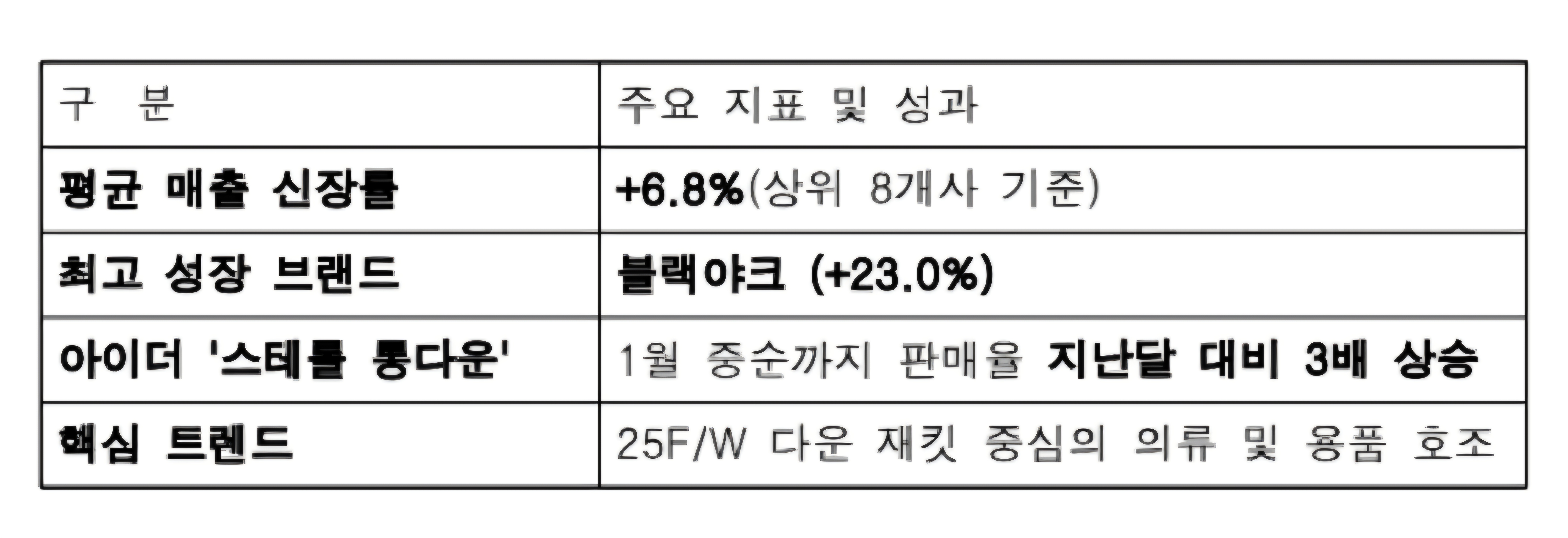 - 매출 구조의 고착화: 최근 3~4년 연속 1월 초 강추위가 이어지면서 연초 한파와 시즌오프가 맞물려 매출을 끌어올리는 구조가 업계의 안정적 흐름으로 자리 잡았습니다.