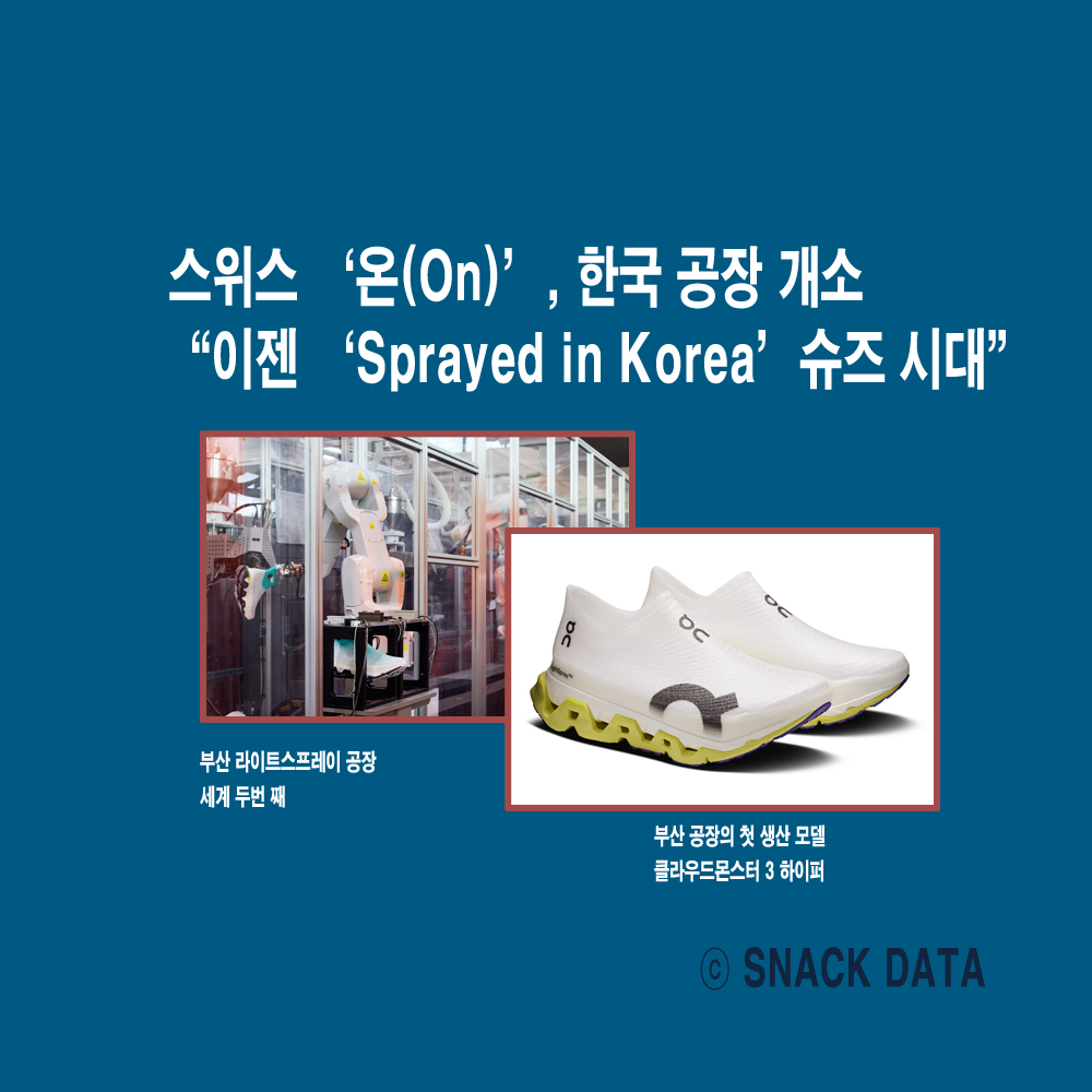 스위스 프리미엄 스포츠 브랜드 '온(On)'이 취리히에 이어 세계 두 번째 라이트스프레이(LightSpray™) 자동화 공장을 한국 부산 인근에 세웠습니다. 단순한 공장 설립을 넘어 로봇이 어퍼를 직접 분사해 만드는 첨단 제조 기술의 글로벌 허브로 한국을 낙점했다는 점에서 그 의미가 남다릅니다.
